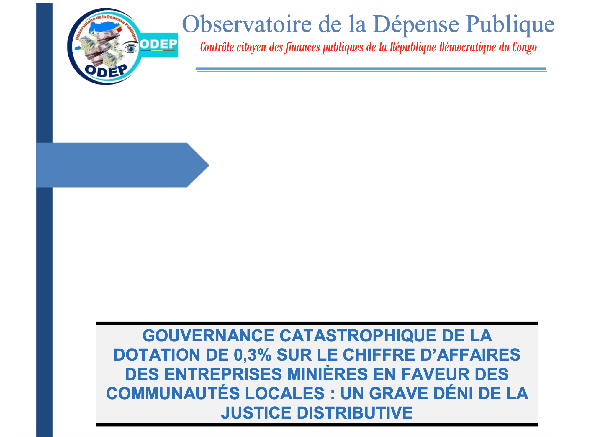 GOUVERNANCE CATASTROPHIQUE DE LA DOTATION DE 0,3% SUR LE CHIFFRE D’AFFAIRES DES ENTREPRISES MINIÈRES EN FAVEUR DES COMMUNAUTÉS LOCALES : UN GRAVE DÉNI DE LA JUSTICE DISTRIBUTIVE